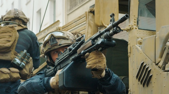 Use of NATO gear: For whatever reason, fig leafed as “limited ammo supplies for sustained fighting” on board, the team uses NATO – compatible weapons and ammo ashore. This included at least one SAW, Humvees, and so forth. Given they used their standard bullpup rifles in the shipboard fight, it may simply be following actual events, or may be a desire to use gear more familiar with worldwide audiences so that they could show off the competence of the commandos.