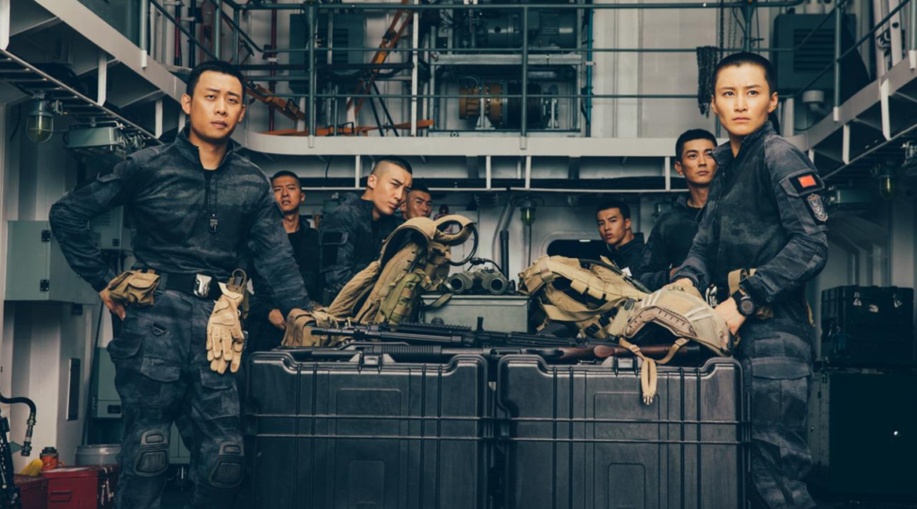 As to my one-line pitch, I wasn’t kidding. Much like Navy Seals from 1990 showed off a broad variety of missions for the team as propaganda to sell people on how awesome the SEALS are, this does too. The Tripoli bit is from the overall mission profile. Both are in the Middle East. Where one was explicitly aimed at squelching Muslim pirates capturing US sailors, the other similarly involved rescuing Chinese citizens from Muslim terrorists. While several recent “modern” war movies have been pretty good – 13 Hours, for example – the degree of “Make America Great” has been at a low ebb of late, much less “America is Awesome.” In Red Sea, you get to see a commando team and navy ship unapologetically, bravely, stoically, and competently serving Chinese interests in international waters and foreign lands.