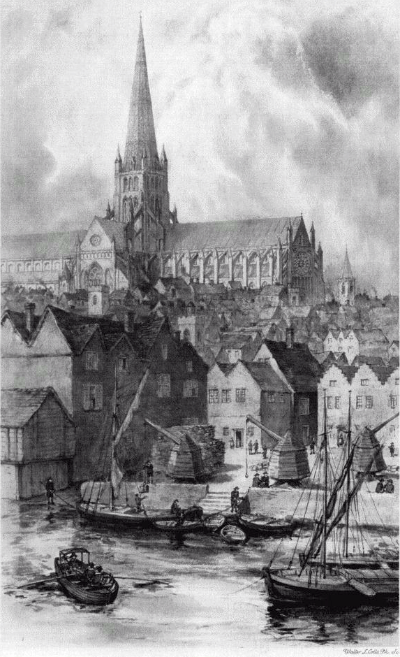 At the dawn of the Reformation we see Henry VIII in all the pomp and glory of mediæval pageantry riding in state to the Cathedral to be adorned with a cap of maintenance and a sword presented to him by the Pope. There was no sign yet of any breach of alliance between the Roman Pontiff and him whom he honoured with the title of “Defender of the Faith.” Lollardism in spite of some burnings spread, and the western tower of the Cathedral earned the name of the Lollards’ Tower, as several were imprisoned there.