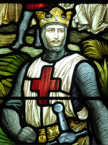 The Transepts have good windows, representing (north) the twelve founders of English Christianity, and south, the first twelve Christian Saxon kings, and also a window in memory of the recovery from illness of His Majesty Edward VII when Prince of Wales.