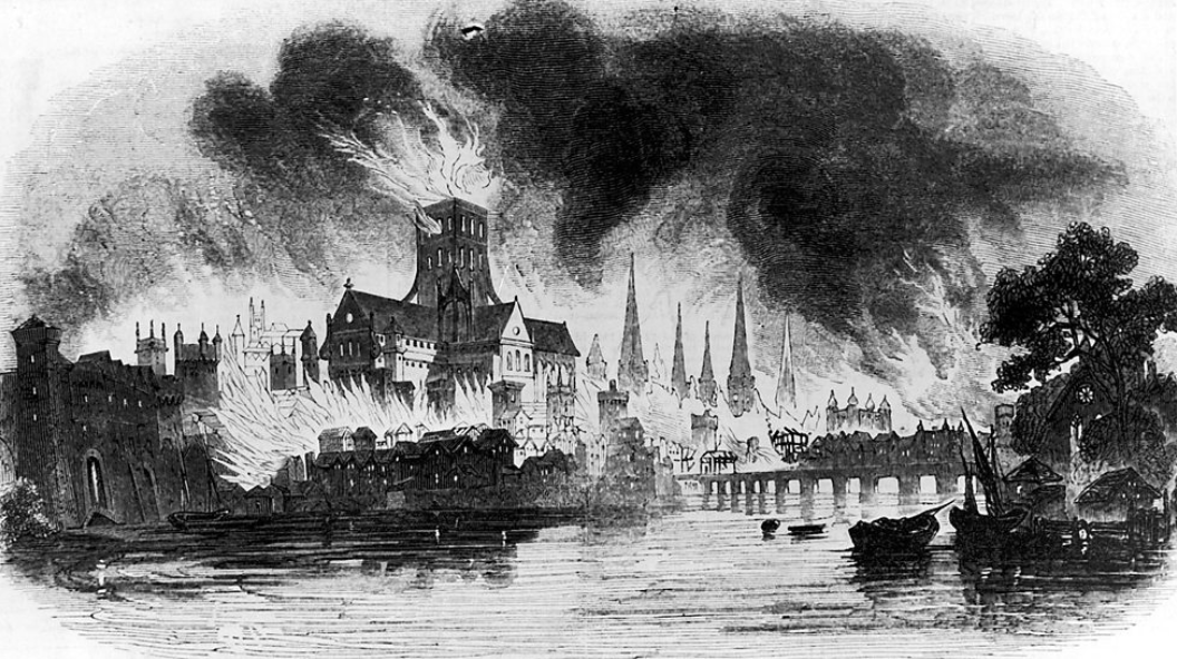 Then came the Great Fire, so graphically described by Evelyn. He writes: “The stones of Paul’s flew like granados, the melting lead running down the streets in a stream, and the very pavements glowing with fiery redness, so as no horse or man was able to tread on them, and the demolition had stopped all the passages, so that no help could be applied.”