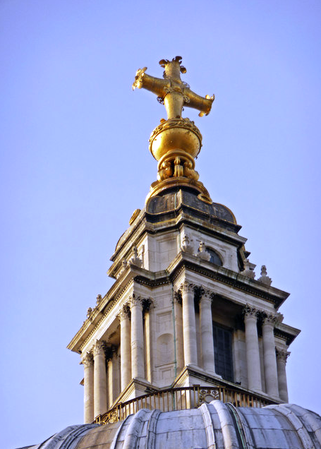 The Dome is supported by immense and massive masonry. Above the arches a cornice runs round, supporting the Whispering Gallery. Then the dome begins to curve inward. Above is a row of windows, set in groups of three, separated by niches recently filled with statues of the Fathers, and then the dome is completed and painted by Sir James Thornhill with scenes from the life of St. Paul. These are too faint and too far distant to be easily observed. The painter nearly lost his life through stepping backward in order to see the effect of his brush, and nearly fell from the scaffold. His companion just saved his life by flinging a brush at the painting, and Thornhill rushed forward to rescue his work, and thus his life was saved.