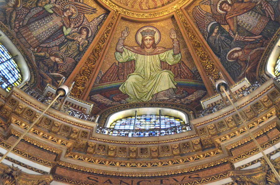 The Pulpit is made of rich marble, and the lectern was made in 1720. The modern mosaics are of unique interest, and add much to the beauty of the Cathedral. To Sir William Richmond the credit of this work is mainly due, and for some of earlier portions to Mr. G.F. Watts, R.A.