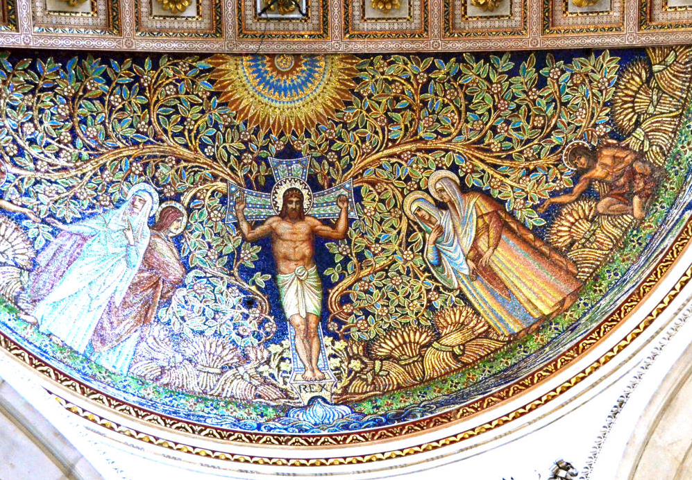 The Reredos is a noble example of modern work, and is worthy of close examination. Behind it is the Jesus Chapel, containing a monument of Canon Liddon. The mosaic decorations of the choir are the work of Sir William Richmond, and are worthy of the highest praise.