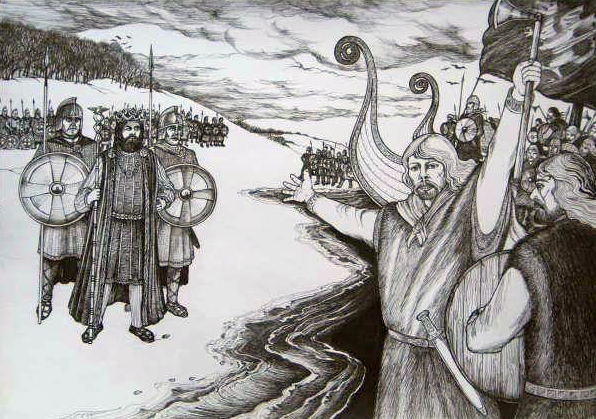 Hengist and Horsa acceded to this proposal. They marched their followers into battle, and defeated Vortigern’s enemies. They sent across the sea to their native land, and invited new adventurers to join them. Vortigern was greatly pleased with the success of his expedient. The Picts and Scots were driven back to their fortresses in the remote mountains of the north, and the Britons once more possessed their land in peace, by means of the protection and the aid which their new confederates afforded them.