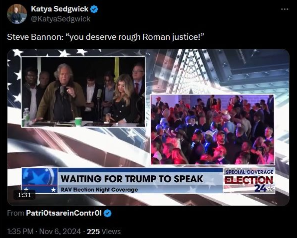 Bannon has promised “rough, Roman justice” for the Democrat Fraud Machine architects and enablers.