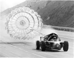 “Blowouts don’t bother Art…he didn’t panic. He hit the kill button on his steering wheel; this shut down the engine and he coasted to about 500 miles an hour. Then he popped his first chute, and it went all to pieces and jerked the car real bad. He just held onto the steering till the car straightened out, and then he popped the other chute at about 400 and it tore in two, but it slowed him down and at 350 he hit the brakes and burned them out, and he just rode it down on three wheels.”