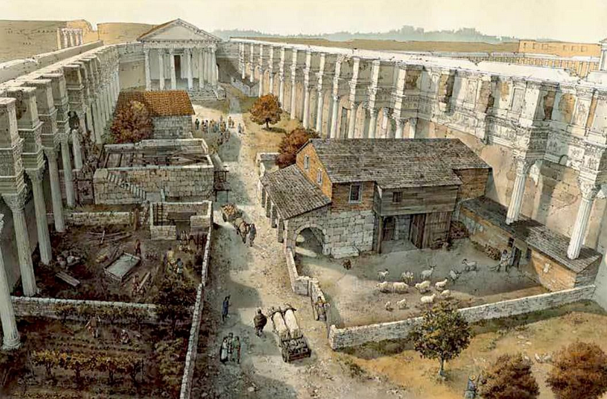 Since the days of the first barbarian invasions the Romans have gone on building with materials taken from the ancient temples, theatres, law-courts, baths and villas, stripping them of their gorgeous casings of marble, pulling down their walls for the sake of the blocks of travertine, setting up their own hovels on the top or in the midst of these majestic piles. Thus it has been with the memorials of paganism: a somewhat different cause has contributed to the disappearance of the mediæval churches.
