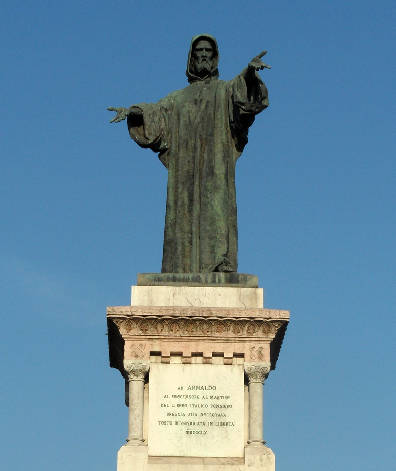 But it would have been well worth the while of the Teutonic Emperors to have made the Romans their allies, and bridled by their help the temporal ambition of the Popes. The offer was actually made to them, first to Conrad the Third, who seems to have taken no notice of it; and afterwards, as has been already stated, to Frederick the First, who repelled in the most contumelious fashion the envoys of the senate. Hating and fearing the Pope, he always respected him: towards the Romans he felt all the contempt of a feudal king for burghers, and of a German warrior for Italians. At the demand of Pope Hadrian, whose foresight thought no heresy so dangerous as one which threatened the authority of the clergy, Arnold of Brescia was seized by the imperial prefect, put to death, and his ashes cast into the Tiber, lest the people should treasure them up as relics. But the martyrdom of their leader did not quench the hopes of his followers. The republican constitution continued to exist, and rose from time to time, during the weakness or the absence of the Popes, into a brief and fitful activity. Once awakened, the idea, seductive at once to the imagination of the scholar and the vanity of the Roman citizen, could not wholly disappear, and two centuries after Arnold’s time it found a more brilliant if less disinterested exponent in the tribune Nicholas Rienzi.