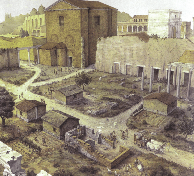 The modern traveller, after his first few days in Rome, when he has looked out upon the Campagna from the summit of St. Peter’s, paced the chilly corridors of the Vatican, and mused under the echoing dome of the Pantheon, when he has passed in review the monuments of regal and republican and papal Rome, begins to seek for some relics of the twelve hundred years that lie between Constantine and Pope Julius the Second. ‘Where,’ he asks, ‘is the Rome of the Middle Ages, the Rome of Alberic and Hildebrand and Rienzi? the Rome which dug the graves of so many Teutonic hosts; whither the pilgrims flocked; whence came the commands at which kings bowed? Where are the memorials of the brightest age of Christian architecture, the age which reared Cologne and Rheims and Westminster, which gave to Italy the cathedrals of Tuscany and the wave-washed palaces of Venice?’