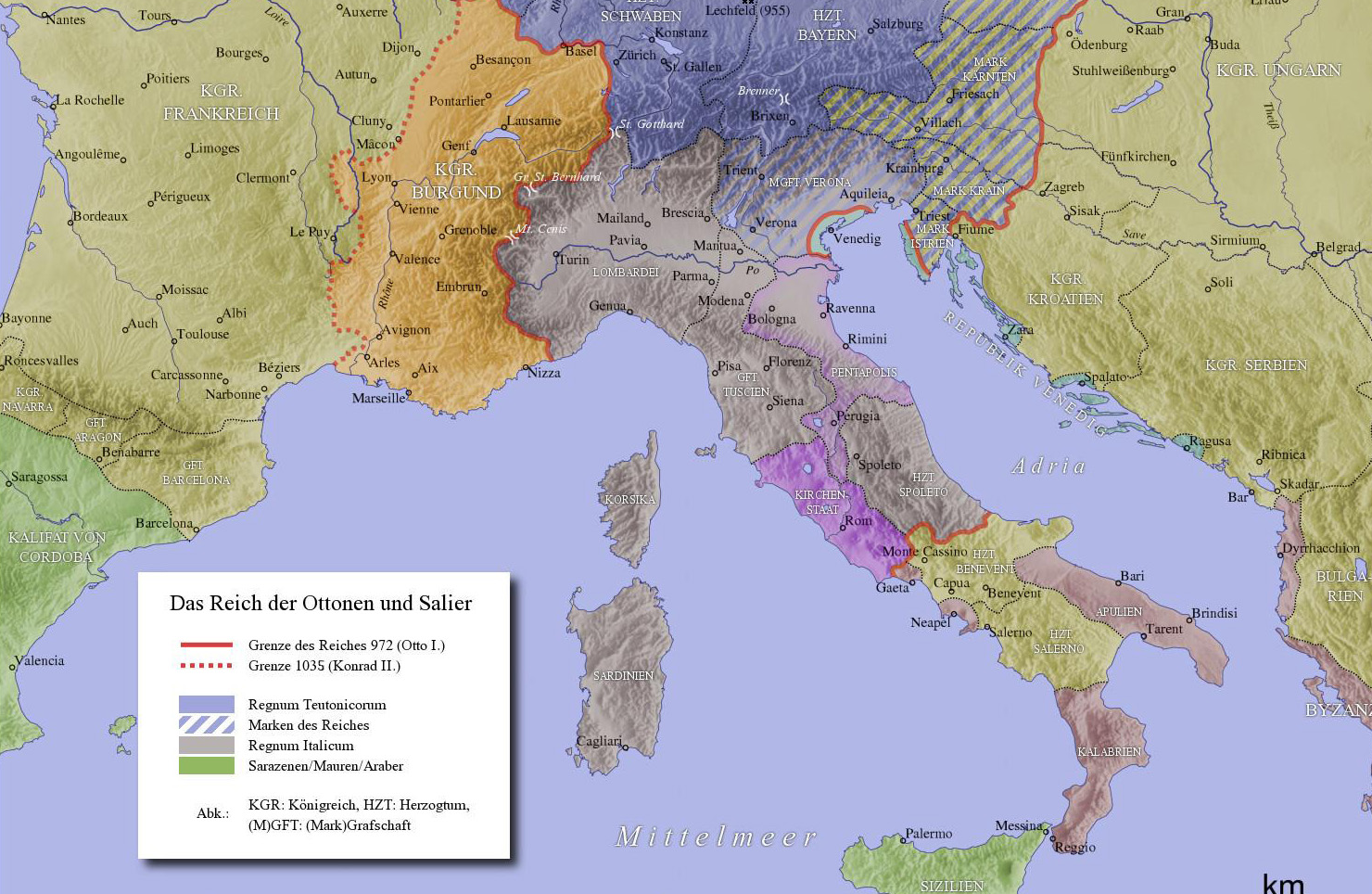 This restored Empire, which professed itself a continuation of the Carolingian, was in many respects different. It was less wide, including, if we reckon strictly, only Germany proper and two-thirds of Italy; or counting in subject but separate kingdoms, Burgundy, Bohemia, Moravia, Poland, Denmark, perhaps Hungary.