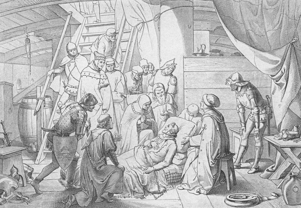 The son of Pietro Zeno and Agnese Dandolo, this famous Venetian had been well bred to the shock of battle, for his father was for some time Governor of Padua, and had won a great struggle against the Turks, when the careening galleys of the Venetian Squadron grappled blindly with the aggressive men of the Ottoman Empire. There were ten children in the family and little Carlo was named after the Emperor Charles IV, who sent a retainer to the baptism of the future seaman, saying, “I wish the child well. He has a brave and noble father and I trust that his future will be auspicious.”