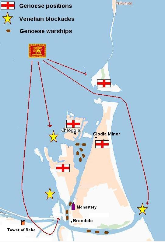 As winter came, the victoriously aggressive Genoese retreated to Chioggia, withdrawing their fleet into the safe harbor to await the spring; leaving only two or three galleys to cruise before the entrance, in case the now angered Venetians should attack. But they were to be rudely awakened from their fancied seclusion.
