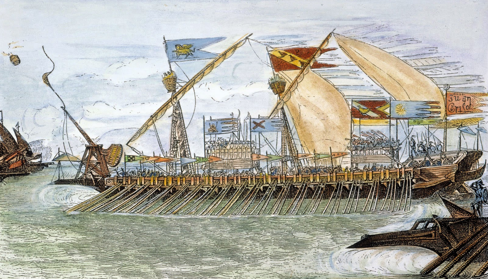 “On! on!” cried the Genoese seamen, and without further ado, twenty-two galleys careened forward, their white sails bellying in the wind, their hawsers groaning, spars creaking, and sailors chattering like magpies on a May morning.