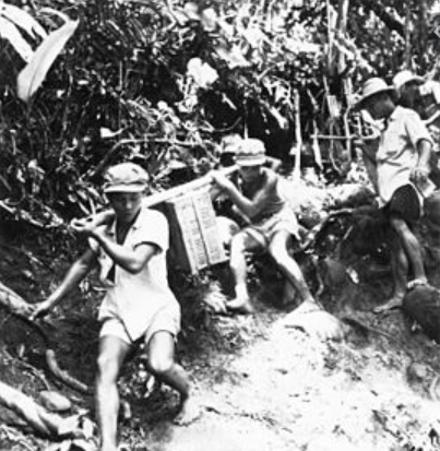 “Progress had been slow and laborious. At times litters had to be passed from hand to hand when terrain became too hazardous for routine carrying. The litters could be carried only a short distance by the tired bearers before being turned over to a relief group. Walking wounded had to be frequently assisted over precipices and fallen trees. Some of them should have been carried on litters, but they insisted on walking to ease the burden of the bearers.