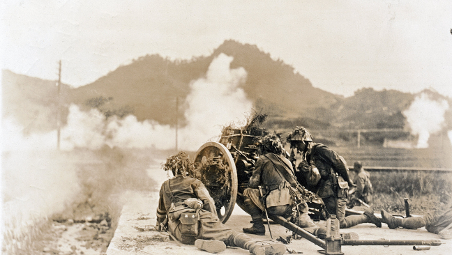 ‘Two Japanese 75 mm. field pieces north-east of the block went into action. At 1100 friendly artillery registered counter-fire. The perimeter rocked with the blasts, straining the nerves of the men to the breaking point.