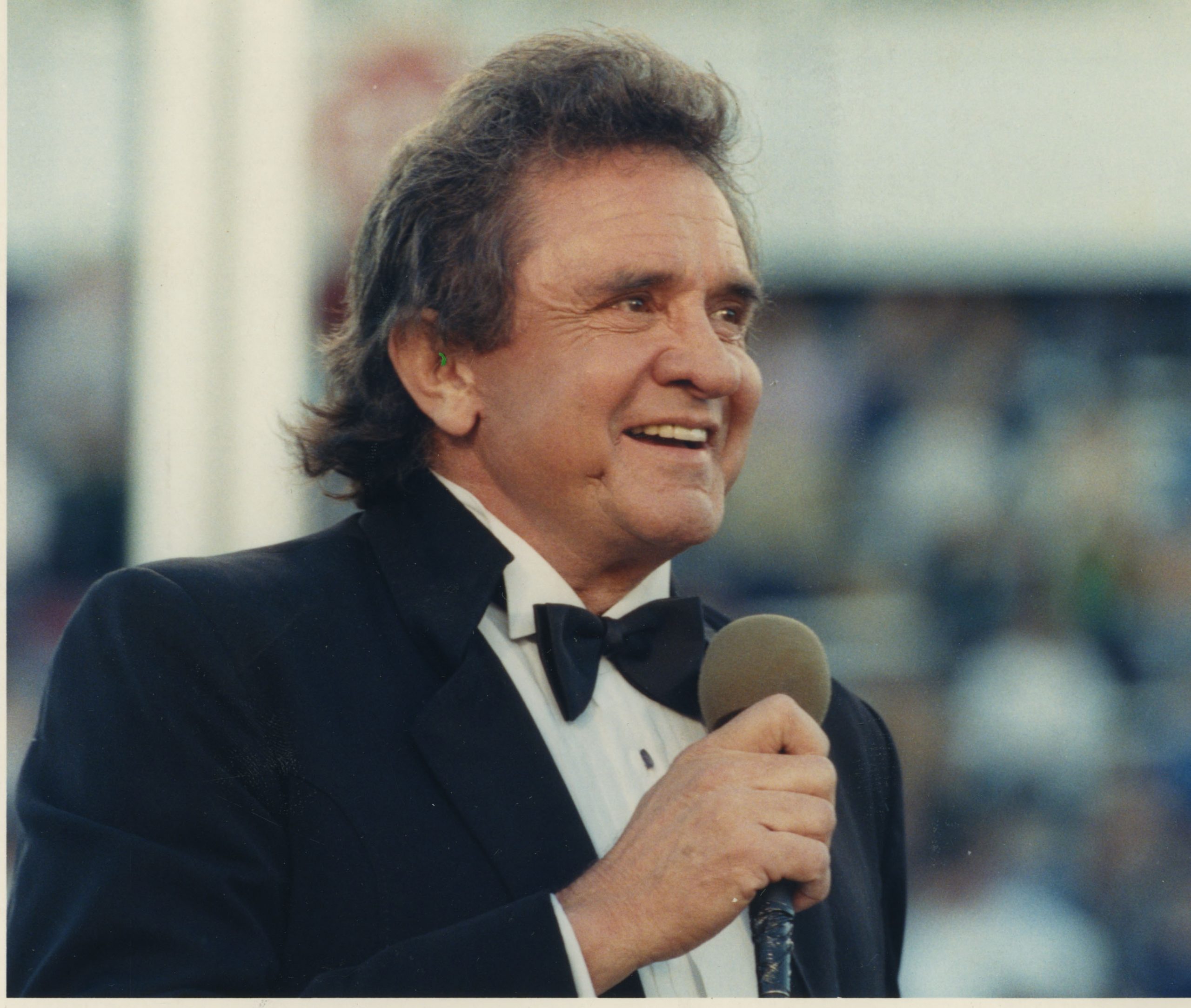 ADG file photo 9.24.89 Johnny Cash entertains the crowd at War Memorial Stadium during Billy Grahman's Crusade last meeting in Little Rock.