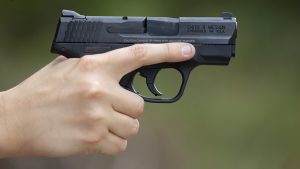 3) Never put your finger on the trigger until you have your sights on your target.  We call this trigger discipline. I cannot tell you how many people have a habit of keeping their finger on the trigger at all times when handling a firearm. Go to any gun show, and you will see some dumbass carrying around an AR with his finger on the trigger. If you know someone like this, you should slap them every time you see them do it. The term “Glock leg” exists to describe all the men limping around out there from shooting themselves while they were trying to draw their Glocks with their fingers on the trigger. Don’t do it.