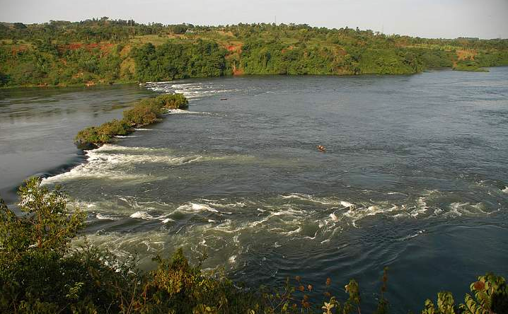 As we drifted out into mid-stream the most beautiful view of the falls broke upon us. It was already almost daylight, but the sun had not yet actually topped the great escarpment over which the Nile descends. The banks on both sides of the river, clad with dense and lofty forest and rising about twice as high as Cliveden Woods from the water’s edge, were dark in shadow. The river was a broad sheet of steel grey veined with paler streaks of foam. The rock portals of the falls were jetty black, and between them, illumined by a single shaft of sunlight, gleamed the tremendous cataract—a thing of wonder and glory, well worth travelling all the way to see.