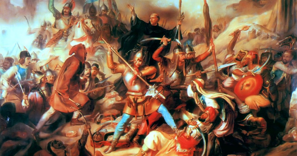 The Mahometan flood already beat upon the bounds of Catholic Christendom, in the forefront of which stood Hungary. Hungary’s King, Sigismund, was able for a moment in 1396 to unite the nations of Europe against the common danger, but the proud array of mail-clad knights were swept away like chaff before the steady ranks of the janizaries.