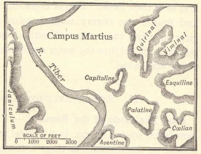 In this way the Sabines gained possession of the citadel, though Romulus still held the main city. The Romans were of course extremely disconcerted at the loss of the citadel, and Romulus, finding that the danger was now extremely imminent, resolved no longer to stand on the defensive, but to come out upon the plain and offer the Sabines battle. He accordingly brought his forces out of the city and took up a strong position with them, between the Capitoline and Palatine hills, with his front toward the Campus Martius, where the main body of the Sabines were posted. Thus the armies were confronted against each other on the plain, the Romans holding the city and the Palatine hill as a stronghold to retreat to in case of necessity, while the Sabines in the same manner could seek refuge on the Capitoline hill and in the citadel.