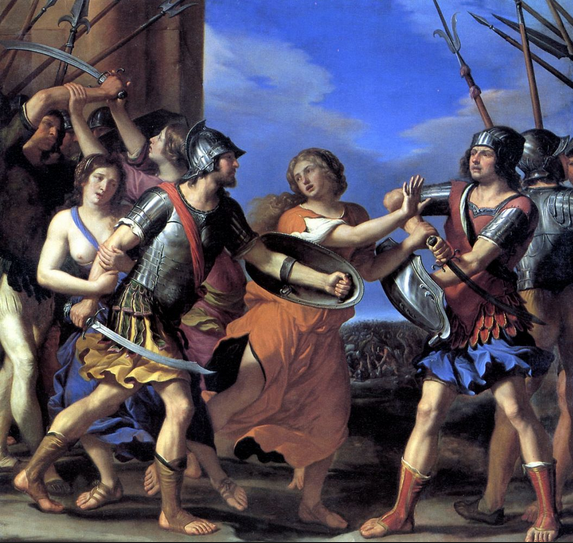 At length, however, after suffering extreme distress for many days, a crisis arrived when they found that they could interpose. Both parties had become somewhat weary of the contest. Neither could prevail over the other, and yet neither was willing to yield. The Sabines could not bring themselves to submit to so humiliating an alternative as to withdraw from Rome and leave their daughters and sisters in the captors’ hands, after all the grand preparations which they had made for retaking them. And on the other hand the Romans could not take those, who, whatever had been their previous history, were now living happily as wives and mothers, each in her own house in the city, and give them up to an army of invaders, demanding them with threats and violence, without deep dishonor. Thus, though there was a pause in the conflict, and both parties were weary of it, neither was willing to yield, and both were preparing to return to the struggle with new determination and vigor.