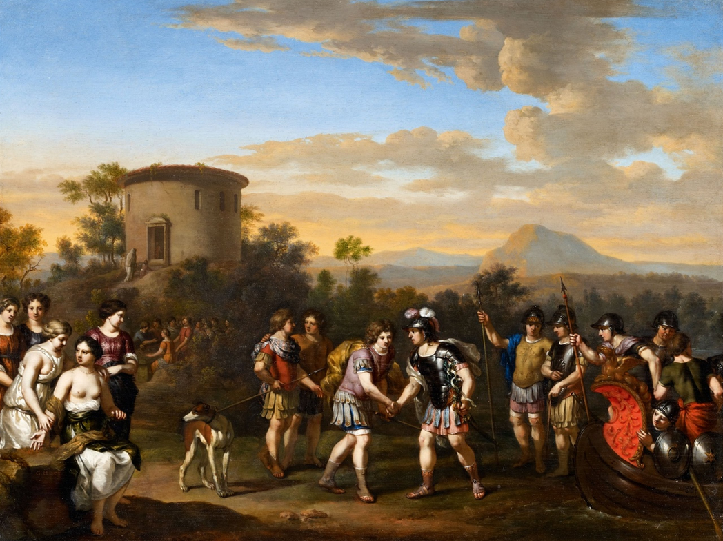 The effect produced upon the mind of Latinus by the appearance of these ambassadors, and by the communication which they made to him, proved to be highly favorable. He received the presents, too, which they had brought him, in a very gracious manner, and appeared to be much pleased with them. He had heard, as would seem, rumors of the destruction of Troy, and of the departure of Æneas’s squadron; for a long time had been consumed by the wanderings of the expedition along the Mediterranean shores, so that some years had now elapsed since the destruction of Troy and the first sailing of the fleet. In a word, Latinus soon determined to accede to the proposals of his visitors, and he concluded with Æneas a treaty of alliance and friendship. He designated a spot where the new city might be built, and all things were thus amicably settled.