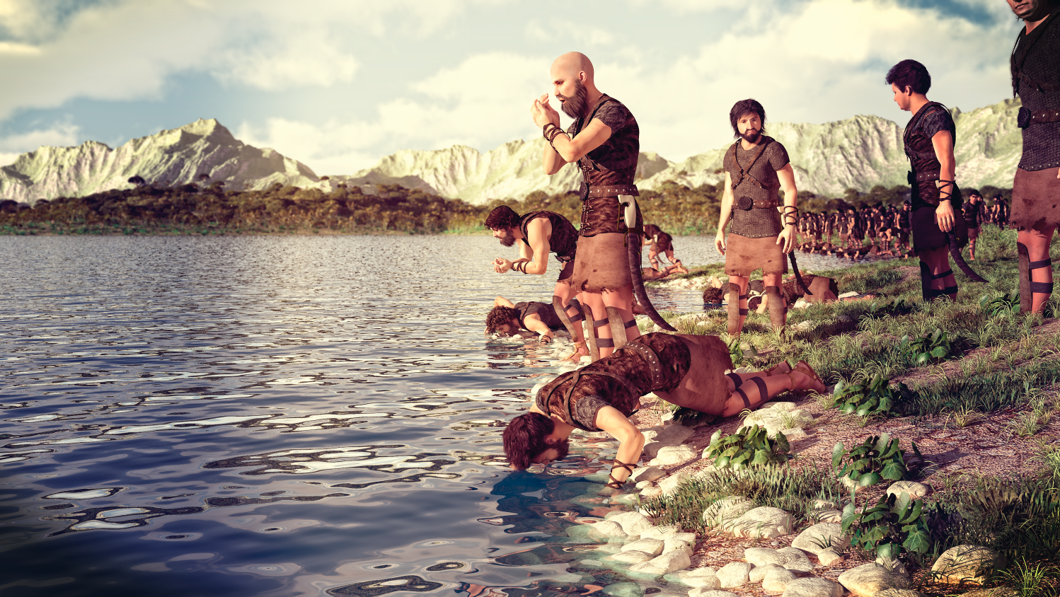 2. Second test. God said, Too many yet. So he instructs Gideon to test them again. Bring them down to the water, and every one that lappeth with his tongue, as a dog lappeth, shall be chosen. All the others shall be rejected. Perhaps you have seen the dog running along by the water, or through the water, and catching it up as he goes with his tongue. He has no time to lose. He takes water, not simply to quench his thirst, but principally to help him in his chase. So with these men.
