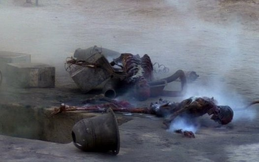 Remember that scene in A New Hope, when Luke goes back to the farm and finds the place a smoking ruin, with the horribly mutilated, crispy barbecued remains of his loved ones strewn across the porch like charred garbage?