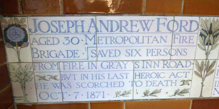 But an even more terrible accident happened to a fireman named Ford, in October, 1871. His death, after saving six persons, remains one of the most terrible in the annals of the brigade.