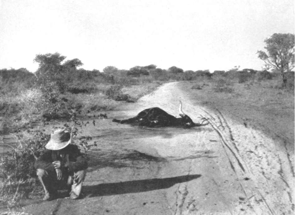 At Wilson’s farm, six miles from Bulawayo, where herds of infected cattle had been slaughtered in the hopeless endeavour to stamp out the disease, acres of carcasses were lying festering in the sun, and any one passing along the road did not require to look at them to know they were there. Strangely enough, in spite of the exceptional opportunities offering for free meals throughout Matabeleland at this time, not a vulture was to be seen. I have heard it said that too hearty an indulgence in rinderpest meat in the early days of the plague killed all the vultures, and whether this is so or not, certain it is that these useful birds are now as scarce as cows in Matabeleland.