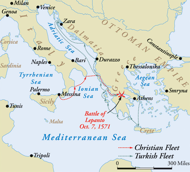 The peril that menaced European civilization in 1571 was that at last the Moslem powers of the Mediterranean were actually combining their sea forces for a great effort of maritime conquest. Their operations were still delayed by their traditional disposition to indulge in plundering raids, or to wait for the fall of a blockaded fortress, instead of making the destruction of the opposing sea power their first object. If the pashas of Selim’s fleets had really understood their business, they might have destroyed the Christian squadrons in detail before they could effect their concentration in the waters of Messina. But the Turkish admirals let the opportunity escape them during the long months when the “Holy League” was being formed and its fleets made ready for action.