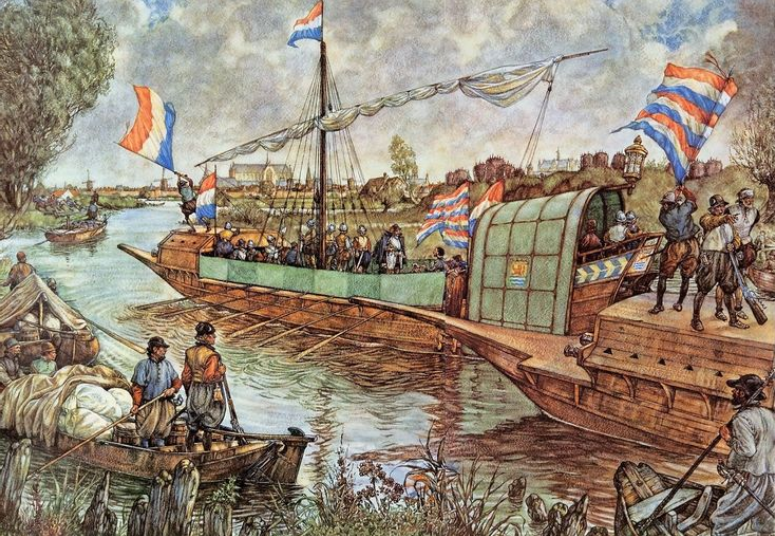 The thought of the Prince of Orange night and day was how to render assistance to the citizens of Leyden—how to convey provisions into the town. He had collected a large supply, but, with all his exertions, could not raise a sufficient force to break through the blockade. In this desperate extremity the Dutch resolved to have recourse to that expedient which they had kept in reserve until it should be clear that no other was left—they would break their dikes, open their sluices, inundate the whole level country around Leyden, and wash the Spaniards and their forts utterly away!