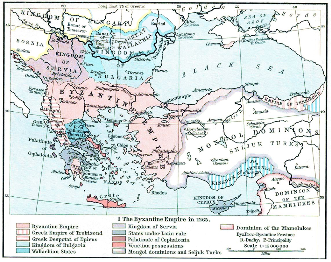 Besides the misrule of Michael Paleologus, other factors were at work, busily undermining the restored Greek Empire. For one thing, the Greek and Bulgarian princes, who had obtained independence when the Latins ruled in Constantinople, had no intention of returning to their old allegiance; while here and there were feudal states, like the Duchy of Athens, established by the Latins and still held by them, although the Frankish Emperor who had been their suzerain had disappeared. The islands in the Aegean Sea were most of them in Venetian hands, and Venice took care that the Greek Empire, whose fleet she had swept from the Mediterranean in the thirteenth century, should not construct another sufficiently strong to win back these commercial and naval bases. In the same way the trade that had passed from Constantinople never returned: for the cities of the Mediterranean preferred to deal on their own account with Syrian and Egyptian merchants rather than to pay toll to a ‘middleman’ in the markets of the Paleologi.