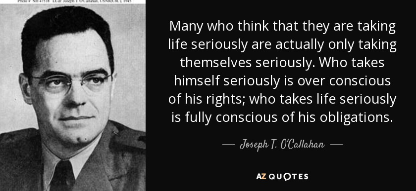 From then on for the next several hours, Chaplain O’Callahan was afforded a vivid dramatization of what hell was like. He groped his way through the smoke-filled corridors to the open deck and ministered to the wounded and dying amid the violently exploding bombs, shells and rockets. He knelt calmly with the wounded as burning fragments and debris rained down on the deck. Then he organized and led fire-fighting crews into the fiery bowels of the ship, and helped in the jettisoning of live hot bombs which rolled helter-skelter on the decks.