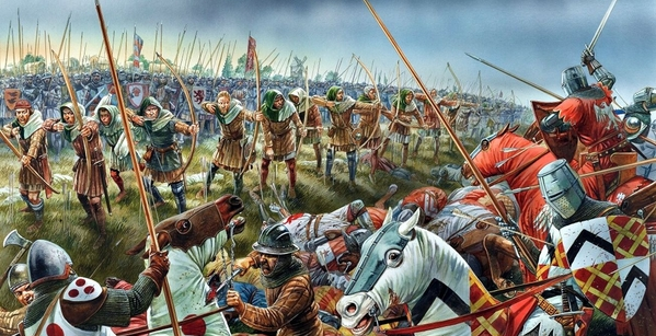 Edward did not invade France for some years, but his sailors destroyed the French fleet and began to show themselves able to maintain their king’s claim to be lord of the English seas upon every side. In 1346 Edward himself landed in Normandy, devastated the country, and marched up the Seine almost to Paris, but was then obliged to retreat northward before a large army which Philip had collected. Edward made a halt at Crécy, and here one of the most celebrated battles of history took place. It taught the world a great lesson in warfare by proving once more, as the battle of Bannockburn had already done, that foot soldiers, properly armed and trained to act in concert, could defeat the feudal cavaliers in spite of their lances and heavy armor. The proud mounted knights of France performed prodigies of valor, each for himself, but they did not act together and could not hold their ground against the deadly shower of arrows poured into their midst from the long bows of the English archers. The flower of French chivalry was routed with terrible slaughter by the serried ranks of the humble English foot soldiers. It was at Crécy that Edward’s son, the Black Prince,—so named from his black armor,—won his spurs.