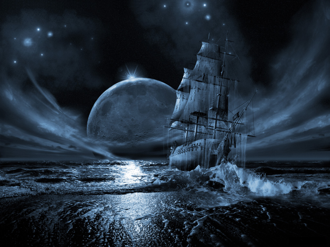 Midnight and moonlight and the Temple in the Sea Bill Smiles clearly remembers, and all the derelicts in the world were there, the old abandoned ships. The figureheads were nodding to themselves and blinking at the image. The image was a woman of white marble on a pedestal in the outer court of the Temple of the Sea: she was clearly the love of all the man-deserted ships, or the goddess to whom they prayed their heathen prayers. And as Bill Smiles was watching them, the lips of the figureheads moved; they all began to pray. But all at once their lips were closed with a snap when they saw that there were men on the Sea-Fancy. They all came crowding up and nodded and nodded and nodded to see if all were drunk, and that’s when they made their mistake about old Bill Smiles, although he couldn’t move. They would have given up the treasuries of the gulfs sooner than let men hear the prayers they said or guess their love for the goddess. It is the intimate secret of the sea.
