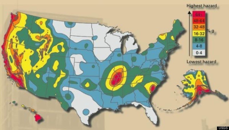In the far west, the coastline from San Diego to Anchorage is one big James Bond martini ready to be shaken if not stirred. The San Andreas Fault is the most famous, but the entire Pacific coast is underlain with fault lines. Double-check this map against the map of nuclear plants – there’s a couple places that could go big bad in a hurry.