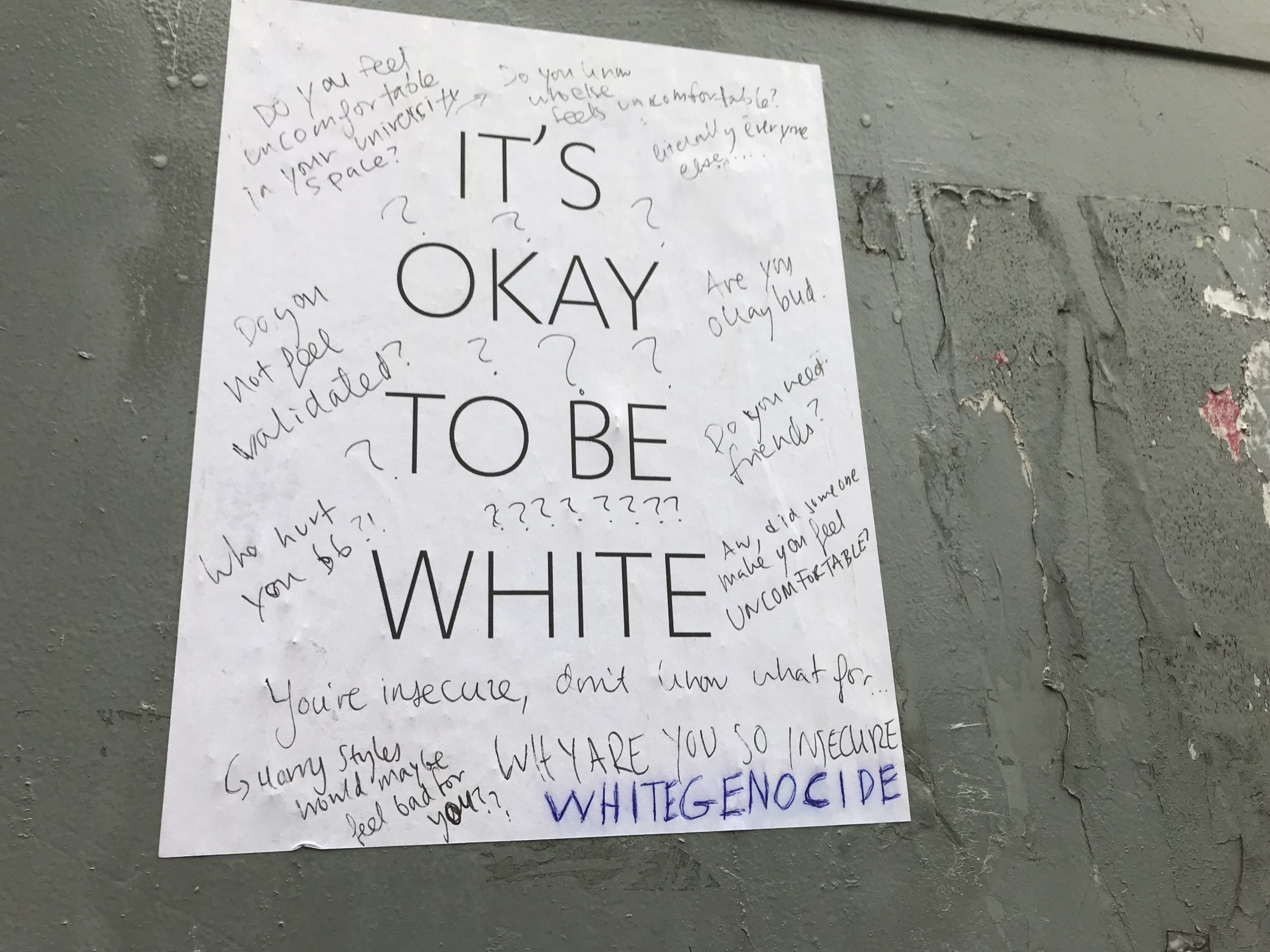 Everywhere the “It’s OK to be White” signs or stickers have turned up, from Cal Davis to Toronto to Atlanta, administrators and politicians have loudly demanded that the criminals be located for a show trial. But they will never come out and say exactly what the true charge is.