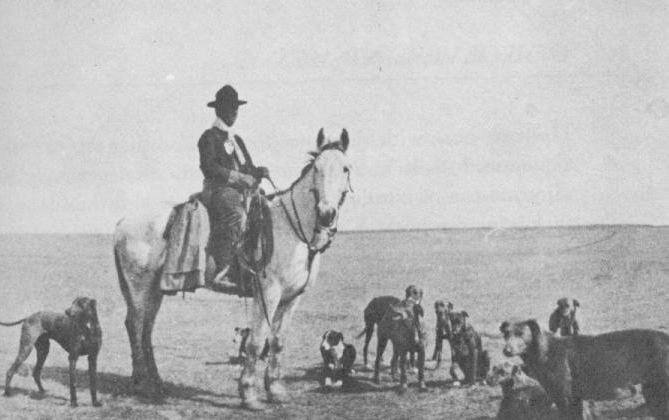 Once or twice the so-called Russian wolf-hounds or silky coated greyhounds, the “borzois,” have been imported and tried in wolf-hunting on the western plains; but hitherto they have not shown themselves equal, at either running or fighting, to the big American-bred greyhounds of the type produced by Colonel Williams and certain others of our best western breeders. Indeed I have never known any foreign greyhounds, whether Scotch, English, or from continental Europe, to perform such feats of courage, endurance, and strength, in chasing and killing dangerous game, as the homebred greyhounds of Colonel Williams.
